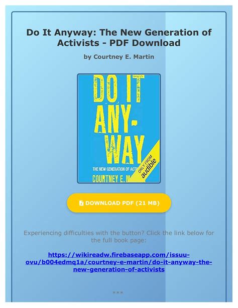 Read Online Do It Anyway The New Generation of Activists Doc online is a convenient and frugal way to read Do It Anyway The New Generation of Activists you love right from the comfort of your own home. Yes, there sites where you can get Doc "for free" but the ones listed below are clean from viruses and completely legal to use.